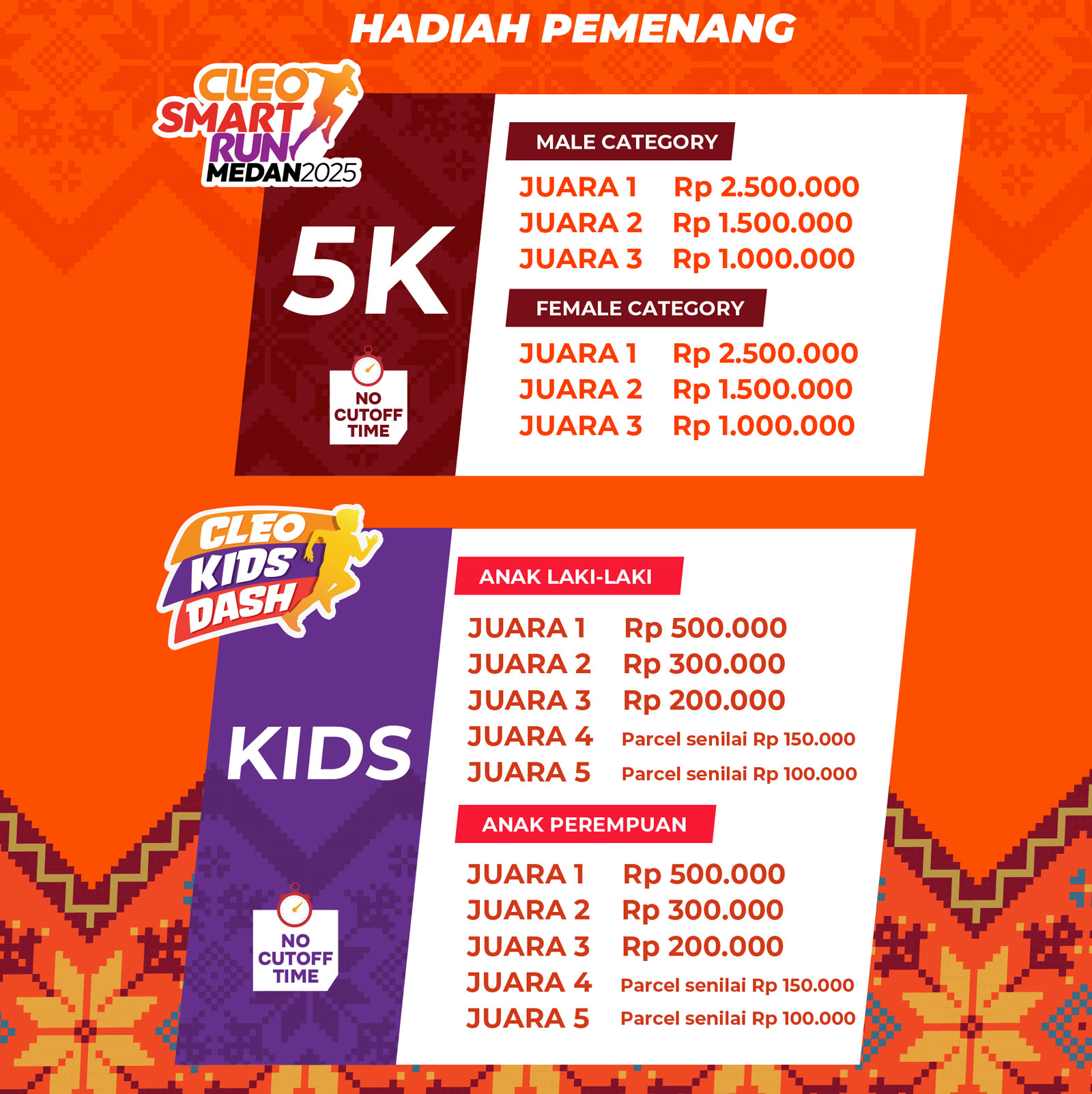 - Tag 3 orang temanmu dan sertakan hashtag #CleoSmartRun2025 #HorasMedan2025 #MurniLebihBaik